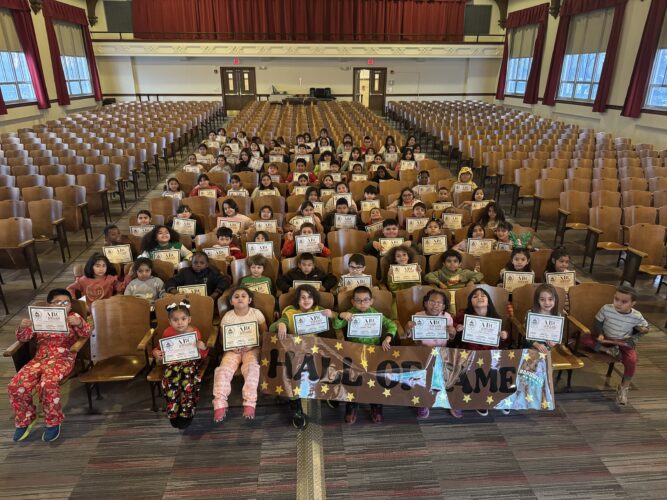 Al final del mes, los estudiantes nominados son reconocidos en nuestra Asamblea ABC, donde reciben un certificado, un pequeño premio, y sus nombres son celebrados con toda la escuela.